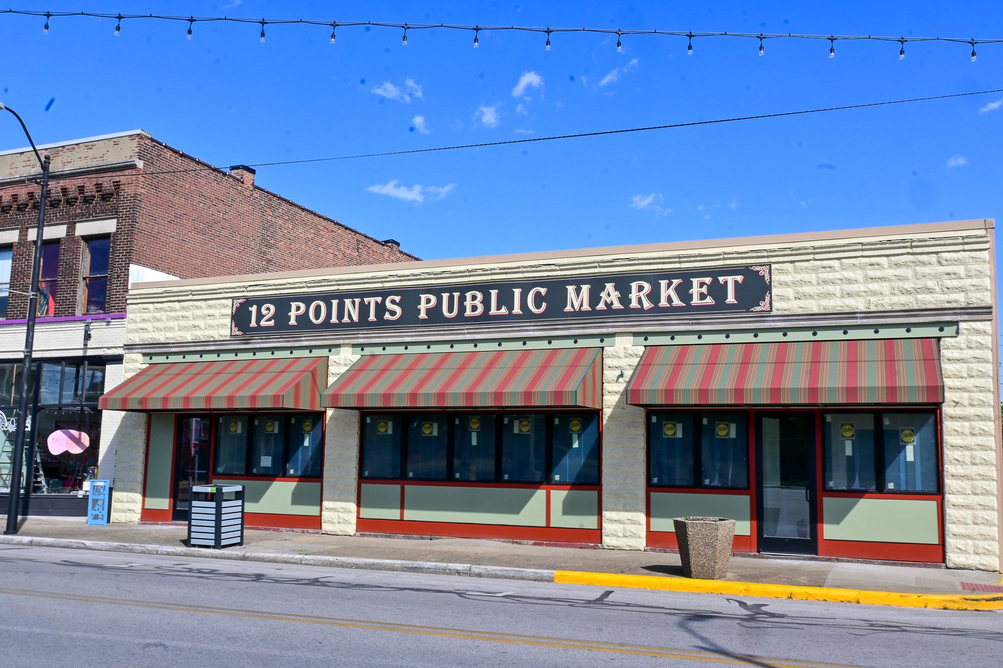 A remarkable transformation happened when ownership changed in 2022. The public first noticed the change to the front of the building. Gone were the three doors to three individual spaces. There were new windows, new paint, and a colorful awning! The interior of the building was renovated into a large retail space that became Terre Haute’s first food hall. Not only are there restaurants, but the space also highlights pieces by local artists. A small stage provides space for local musicians to share their talents nearly every evening.